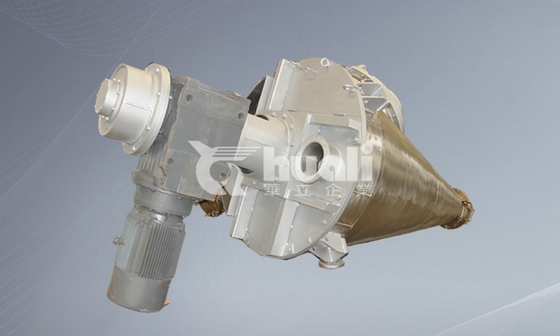 2、該機(jī)適用于固(粉)~固(粉)(粉體粒度20—400目/英寸)混合及固(粉)~液(含液量<15%)的混合。特殊的錐體帶夾套裝置,可對(duì)物料進(jìn)行加熱、干燥、冷卻。