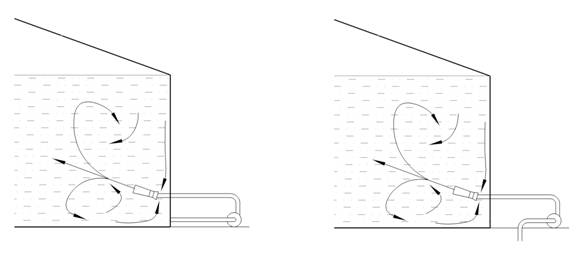 如果一個或幾個SG系列罐用噴射式混合器位置排列正確的話,在罐中就產(chǎn)生了一個三維射流,它把整個罐內(nèi)的物質(zhì)進行均勻混合,而不產(chǎn)生旋轉(zhuǎn)的運動。